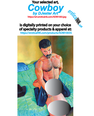 The artwork you selected, ADM1003 COWBOY by DJESTER ART by DJESTER ART byis artworkdigitally printed in the USA onto your choice of specialty items: framed canvas, aluminum sheet, bags (beach, draw-string backpack, cross-body, tote, zipped), BDSM paddle, towels (beach, J💦zz rag, kitchen, dish), coasters (rubber & stone), cheese board, cutting board, pillow case (bed, throw pillow), mugs (coffee, stainless steel, sports bottle), mat (bath, door, yoga, table placement, welcome), cloth, smart phone case, caps (ball cap, beanie), koozie (can, beer bottle), key chain, phone grip, puzzle, cloth napkin, air freshener [add your own scent], slate photo, glass photo, socks, underwear, liquid soap dispenser, cooking apron, smart phone case, throw blanket, glass clock.