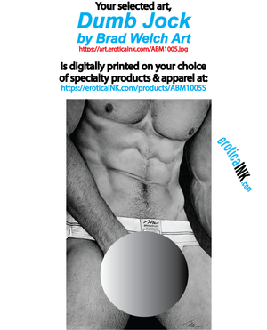 The artwork you selected: , ABM1005 DUMB JOCK by BRAD WELCH ART is artwork digitally printed in the USA onto the garment or bag style of your choice, using Direct to Garment printing technology: T-Shirt, Tank Top, Sleeveless Shirt & Muscle Shirt, Hooded sweatshirts (pull-over & zip-up), Hand-Made Denim Jackets, Bags (drawstring, beach, shopping, totes, convention, jumbo)