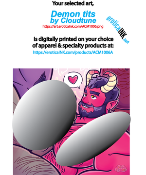 The artwork you selected: ACM1006 DEMON TITS is artwork digitally printed in the USA onto the garment or bag style of your choice, using Direct to Garment printing technology: T-Shirt, Tank Top, Sleeveless Shirt & Muscle Shirt, Hooded sweatshirts (pull-over & zip-up), Hand-Made Denim Jackets, Bags (drawstring, beach, shopping, totes, convention, jumbo)