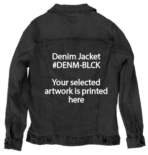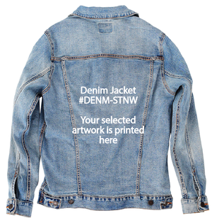 Art is printed on the front of garments unless otherwise specified. Denim Jackets and sweatshirts are printed on the back.