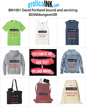 Your selected artwork, BM1001 David Portland bound and servicing BDSMdungeonSIR is a photo-and will be digitally printed in the USA onto the garment or bag style of your choice, using Direct to Garment printing technology: T-Shirt, Tank Top, Sleeveless Shirt & Muscle Shirt, Hooded sweatshirts (pull-over & zip-up), Hand-Made Denim Jackets, Bags (drawstring, beach, shopping, totes, convention, jumbo)