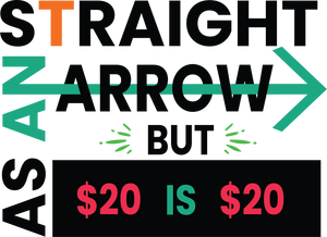 Your elected artwork: M1006, STRAIGHT AS AN ARROW BUT $20 IS $20 is digitally printed in the USA onto the garment or bag style of your choice, using Direct to Garment printing technology: T-Shirt, Tank Top, Sleeveless Shirt & Muscle Shirt, Hooded sweatshirts (pull-over & zip-up), Hand-Made Denim Jackets, Bags (drawstring, beach, shopping, totes, convention, jumbo)
