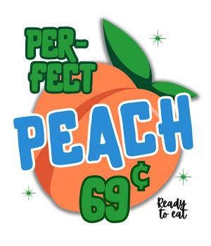 Your selected artwork: M1007, PERFECT PEACH READY TO EAT is digitally printed in the USA onto the garment or bag style of your choice, using Direct to Garment printing technology: T-Shirt, Tank Top, Sleeveless Shirt & Muscle Shirt, Hooded sweatshirts (pull-over & zip-up), Hand-Made Denim Jackets, Bags (drawstring, beach, shopping, totes, convention, jumbo)