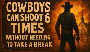M1012A COWBOYS CAN SHOOT 6 TIMES is artwork digitally printed on apparel and bags: t-shirt, tank, hoodie, denim jacket. black, white, red, blue, stonewash. S-3x. USA printed; Ships USA & Interntl. You can also upload your own art